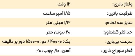 دریل پیچ گوشی شارژی ۱۲ ولت دوسرعته ۲۰ نیوتن متر